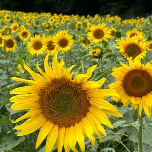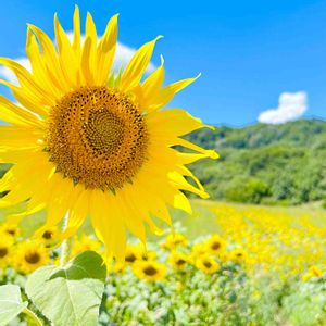 8/26🌻三ノ倉高原花畑にてᵕ̈* ☀️紫外線量と暑さが厳しかった💦 暑さか、雨不足?でしょんぼり🌻畑も あったけど、北側花畑は元気! 🌻🌻🌻🌻🌻🌻🌻🌻🌻🌻🌻 花言葉𑁍𓏸𓈒 「あなたを見つめる」「光輝」