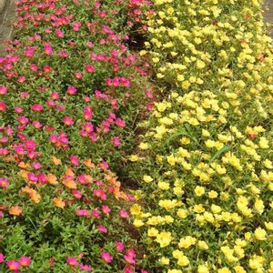 こんばんは😃🌃✨ 今日はお出掛けの途中見かけた🍀😃 街路の花壇でモリモリ咲いているスベリヒユの花🌸