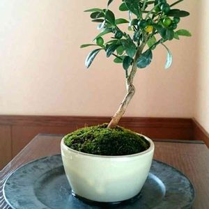 キンズの盆栽。実が黄色く色づきました💛 タニカノさんから頂いた糸まきに乗せてみました😊
