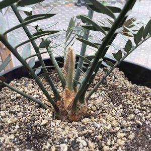 植え替えしたので2連投! エンセファラルトス ホリダス。 国内実生株(^^) 地上部はまだピンポン玉より小さいのに、地中の芋が蕪くらいのサイズになっててびっくり! 慌てて大きめの鉢に植え替えました(笑)