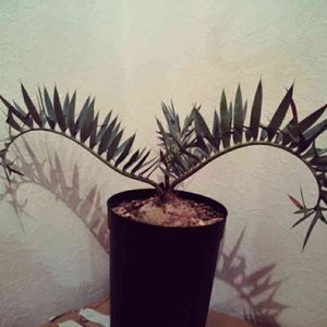 エンセファラルトス ホリダスです。未だ小さく魅力的な棘がないでが今後の栽培で作り込みしていきたいと思います。鉢は基本的に通気性があり蒸れが少ない泥鉢を使っています。