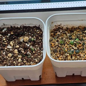 冬の室内組、グリネとロッティ。 私の寝室の出窓が相当居心地が良かったようで、モリモリになりました😅 朝しか日が当たらないけど、家の中では、当たる方かな? 暖房は夜寝る前の1時間ほどだけ。 水やりは、1ヶ月に1回くらいでした。 今年は暖冬だったからかなぁ🙄 この後、ロッティの鉢から飛び出した頭はカットしました😆 すごく不安定だったので…