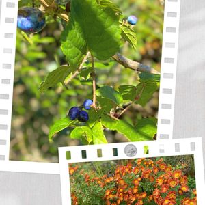 ⬆️上 フェイジョアの木に絡まっていた「野葡萄」🍇に青と紫の実が付いていました🍇🌿 ⬇️下 小菊が満開に❣️ 🍋🌱🍋
