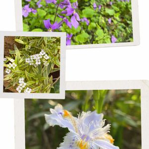 今咲いているお花たちです💜🤍🌿 ムラサキハナナ(諸葛菜・大根草) アリッサム シャガ 🍋🌱🍋