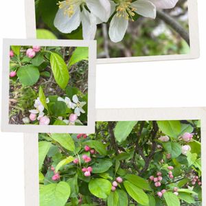 姫りんご🍎のお花です🤍🌿 ツボミは赤っぽいのですが開くとほぼ白🤍です🍎🌿 🍋🌱🍋