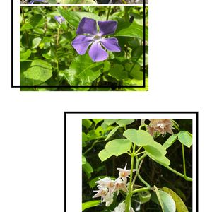 ⬆️上は ツルニチニチソウの斑入りと斑の無いもの ⬇️下は ムベの花です 投稿が間に合わないくらい次々とお花が咲いて来ています🌸🌷🪻🌼🌿 🍋🌱🍋