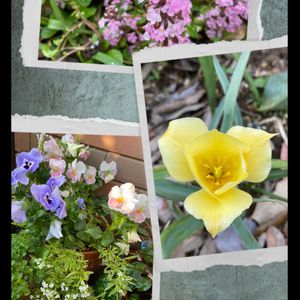 庭のお花たちそろそろ終わりが近づ来ましたね🍃 一応上から アジュガ💗🌿 原種チューリップ💛🌷 パンジー と アリッサム です 🍋🌱🍋