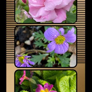 昨夜の雨が上がり お日様が今日も出て来ています😊☀️ 上から 我が家唯一のバラ🌹と星空マム・ソーダ💜🌿そして古くから有る プリムラジュリアン🩷🌿(もう咲き終わりですね😅)です 🍋🌱🍋