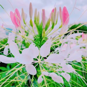 クレオメ (西洋風蝶草) クレオメの花は、風に蝶々🦋が舞うように楽しげに咲きます🎶 そんな花姿から西洋風蝶草の名前がついたそうです🦋 花言葉「小さな愛」 クレオメの花姿は蝶々🦋に例えられますが、イマジネーションを膨らませてみると、まるで恋人がダンス💃をしているように見えることから、この花言葉が生まれたといわれています💖