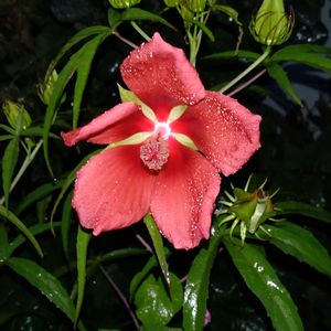モミジアオイの花 二輪開花しました。昨日開花する前のつぼみです。
