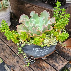 今日はやりきった〜*\(^o^)/* 冬支度の寄せ植え5つ!𖤣𖥧𖥣𖡡𖥧𖤣 1枚目❁⃘ユリリン鉢にジャイアントブルー、ユリリン高砂の翁2つ♪ 2枚目❁⃘お水大好きチームと寒さに弱いチーム♪ カンテは余ってるから両方に投入🤣 3枚目❁⃘誕生日プレゼントに友達に貰ったプランターに、去年のコロさん苗♡ 4枚目❁⃘ユリリン鉢にユリリン苗と道の駅で買った苗とmocaママ苗♡ 名付けて四万十プランター✨️ このプランターが1番変身する予感(。-∀-)にや♡
