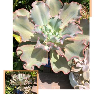 市場に遊びに行き、なんか変なのあると思って見たらエケベリアのジャイアントブルーって書いてあった🤭 ジャイアントブルーの綴化? あまり見ないと思い連れてきた😅 他多数宿根草とか貰い物もあり😁