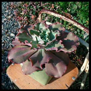 HCからお迎えしたジャイアントブルーです。 高砂の翁に似ているとかなんとか。 高砂の翁を育てたことが無いのでよく分からないけど調べると確かに似ている😅 もっと陽に当ててギュッとさせないと💦