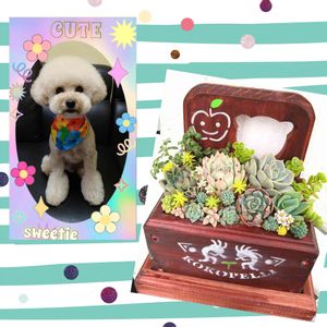 おはようございます❣️ こちらも梅雨に入り💦 ジメジメ生活が始まると思うとゾッとします😱😱 梅雨が怖い多肉生活になるのにモヤモヤした気分だったからちょっと寄せ植えに没頭しちゃいました😜 お友達から🎁のプランターに寄せ植え❣️ お色がイマイチだけど旬のセダムちゃんのお陰で可愛く仕上がったかなぁ(*˘︶˘*).。*♡ オマケはトリミングでイケワン🐶になった愛犬ユノも登場です😂😂