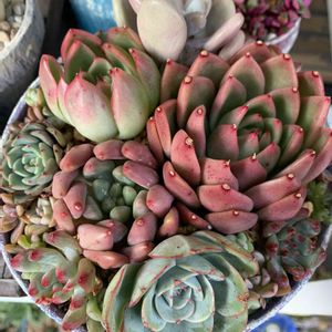 そして私が期待している子たち💕 ◀️ザラゴーサブラックチップ ▶️カラボニー ザラゴーサなんてもっといいお色なんです😍 2つとも爪が良くて😍 でも下葉は締まらないですね💦 後ろに見える子は左から ❁⃘*.゚モンロー ❁⃘*.゚リラシナアガボイデス ❁⃘*.゚ワナビー ワナビーは群生で可愛いの💕