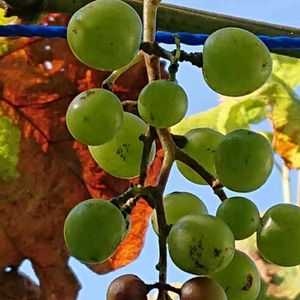 シャインマスカット ちゃんです。 って、我が家のは 虫に やられてしまって😱😭😭😭 この子は 同級生です。 来年は、 もう少し 大きな 実が、😍😍😍 懲りずに また、植えてみました。来年は、 こんな実が なると 嬉しいな。🥰