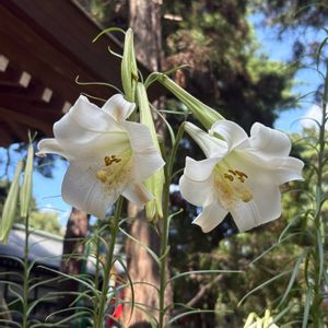 💕 白百合の涙 💕 (テッポウユリ 白) 雨あがりのpick L👀K !!👀💕見てね💕︎ 原産地 日本🇯🇵 ユリ類の多くは日本原産のものである 現在のユリはほどんとが 日本🇯🇵の血🩸を引いている 19世紀に シーボルトによって 欧米にもたらされ、日本のユリが圧倒的な人気を得た それにより イースターでの Madonna lilyが 日本のテッポウユリに用いられ イースターリリーとか マドンナリリーと いわれるようになりました 本来マドンナリリーは カスケードストレイン ニワシロユリ(和名) レバノン🇱🇧 ベイルート川渓谷で育つ花でした