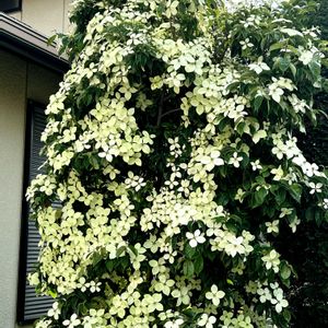①犬友さんのお宅のヤマボウシ 花は少し小振りだけど毎年 見事に咲いています ②車道を挟んで撮ったので 花が小さいですが 見事な咲っぷりでした 🏷️木に咲く花 🏷️真っ白な花 🏷️ビタミンカラー に参加させてください🤍🧡