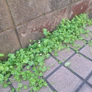 植えた記憶のない謎植物🌱「ツタバウンラン」🤔 何度抜いてもタイルとブロックの隙間から生えてくるしぶとい雑草扱いなんだけども💦案外可愛い葉っぱなので只今グランドカバーとして共存中です😂