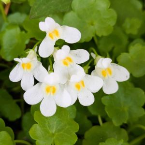 シンバラリア スノーホワイト 清楚でちっちゃな白いお花です。 アジュガと共に伸びる伸びる 良く伸びる〜〜〜🌿