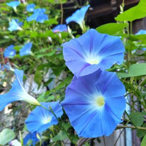 西洋朝顔のヘブンリーブルーが満開です💙 2株植えてあります。 こぼれ種のミルキーウェイも咲きました。 これはラッキー🍀