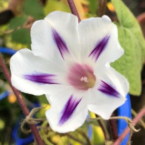 去年のこぼれ種から発芽した西洋アサガオ 50cm以上に伸びてきたと思っていたら今朝一番花が咲いていました💕 あわてん坊さんだけど凄く嬉しい🥰