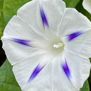白地に 青色(朝5時)の 放射線の花をつけます 開花から徐々にコノ星が 桃色に変化してしぼみます (近くの空き地) 1番好きな朝顔❣️です 西洋朝顔ミルキーウェイ ヒルガオ科