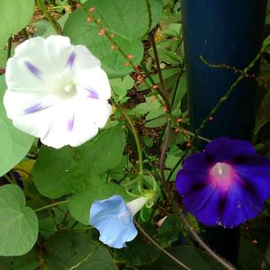 朝顔ミルキーウェイ*** 今日のミルキーさんは「夕顔」になっちゃった🤭 朝には咲いてなかったのに… 午後から強風に備えようと外に出ると*** 控えめに咲いてました➰💙16:08撮影🤳 そばには種が出来はじめてるのを見っけ*** 温帯低気圧に変わったらしいけど夜からゴーゴーと風が怖いわー(>.<)