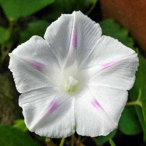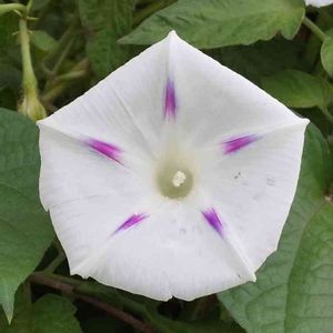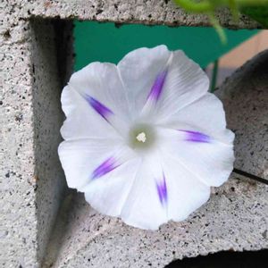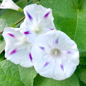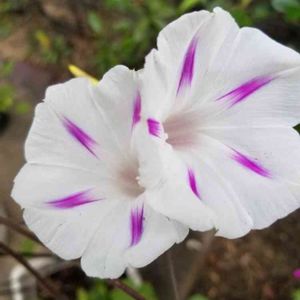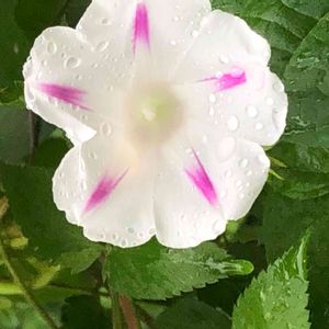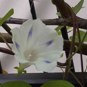朝顔咲きました🌸 あまり白い花は育てませんが パープル💜なラインも入って イイ感じです😆💕