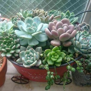 先日、1回鉢をひっくり返して 全部出してからチョキチョキしたカット苗と ネットショッピングでお迎えした 薄紅蓮華と千鳥小岩蓮華 ブロンズ姫のカットを追加して寄せ植えしました (σ≧▽≦)σ 可愛くモリモリに育ってねえ✨🎵 (〃^ー^〃)