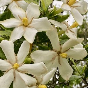 今日の庭の様子 ①ブルースター 今日のお花 ②チョコレートコスモス ③クチナシ 咲き始めました。 ④アスター(エゾギク) ⑤ガクアジサイ