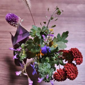 こんばんは。 スマホの調子が悪くてごぶさたになってしまいました。結局機種変更…この年末の物入り時に😩 母が看護師さんと車椅子でお散歩に行き、道端の野草や公園に咲いていた花💧を片手いっぱい摘んで、ニコニコして帰ってきました。 公園の花を摘むのはかなりアウトだと思うんですが…まあ…半月に一度の年寄りのささやかな楽しみなので、大目に見ていただく事にしています😅