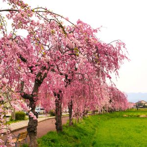 喜多方しだれ桜並木情報2 ほぼ 満開 すっっっごい人です🤣