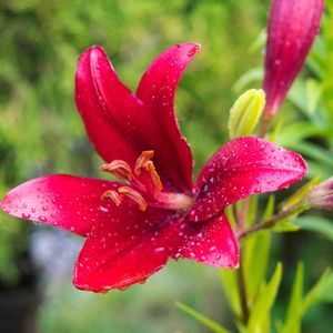 スカシユリ(赤?) 今年最初のスカシユリが咲きました ちょっと毒々しい赤ですね 他の色のつぼみたくさんあります これからが楽しみです