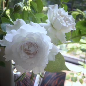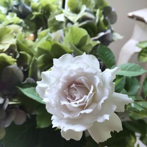 台風🌀がやって来そうです!?😱 進路に当たる地域の方はお気をつけくださいね❗❗ ポツンと咲いていたベランダ組の🌹 ル ブラン✨ カット✂してお部屋にお連れしました🎵 私も明日の朝は 避難することのできる🌹は避難させてから 出勤しようと思います😣💨