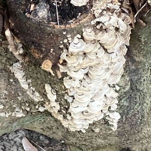 ご近所さんの木を伐採された後にキノコが生えているのを発見。 大きく育って年代物の木 うっそうとしていた木々 風通しがよくなりました。