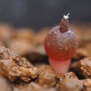 この子も見てほしいです。 アリオカルプス属実生です。 色が赤いのですが正常なのでしょうか?もしご存知の方いらっしゃいましたら教えていただければと思います😥