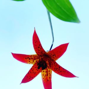 小さくつけたテキストの綴りが間違っています😰 Lilium pardalinum nが抜けてました😱ごめんなさい🙏 リリウム パーダリナム レッドサンセット 学名のpardalinumは「メスのヒョウの」という意味で、葡萄茶色の斑点に由来する と、書いてありました leopard lily とか panther lilyとかも呼ばれているみたいです 葯と蕊が長くて面白い🤣 ❤️ ❤️ ❤️ 7/1 百合が原公園