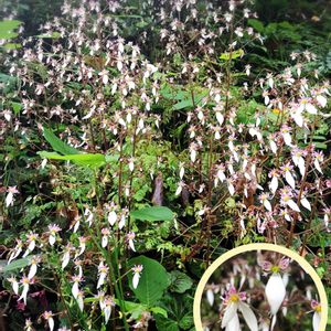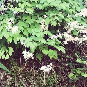 これはイカリソウでしょうか⁇ 山肌にあるのを見つけるも間に川があり近づけず、スマホのズーム写真ではこれが限界かな😅⁈ 20200405@静岡県焼津市