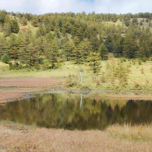 池の平湿原 鏡池 静かな水面に 周りの景色が映り込んで… 草紅葉が始まっていました 木々もうっすら秋色に …🌿🍂🍁 9.24