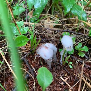 ギンリョウソウ(銀竜草) 幽霊茸とも呼ばれている神秘的な植物です。 中国では透き通った白い色が、水晶のように魅力的に見えたことから「スイショウラン(水晶蘭)」とも呼ばれているそうです。 腐生植物で光合成を行わない植物