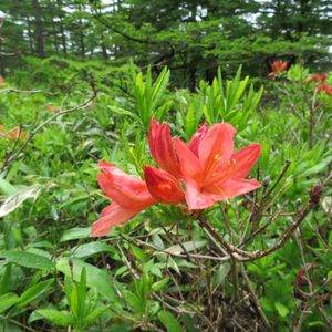 レンゲツツジ 標高の高い湿地近くには鮮やかなオレンジ色のツツジが咲いていました😀