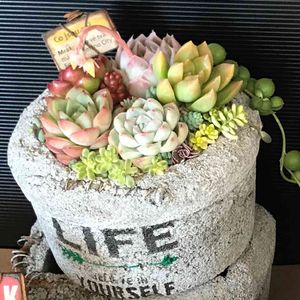 実はikuraさんのコンクリ鉢を手にするのは初めて 両手で持った時のコンクリ鉢のサイズ感がとってもよくて ブーケみたいな韓国苗のアレンジもかわいくて感激✨✨ 私も今年は多肉女子に! …はなれないだろうけど😅 多肉もう少し上手に育てられるように頑張ろう✨✨ ikuraさん、素敵なアレンジありがとう♡