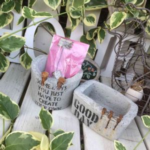 先日届きました、ikuraさんの福袋😆 いや、宝箱ですね♥ lier美苗が3つに、コンクリ鉢~ いろいろ雑貨たち🎵 大満足な内容でした😃 あーこれがあれぱ寄せうえがきっとうまくなる(笑) ようになりたいな~