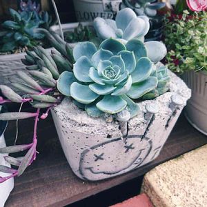やっと植えたよーん(*✪▽✪*)✨ ikuraさんのコンクリ鉢♡*゜器が良いから私の寄せ植えでも素敵すぎる( ૢ⁼̴̤̆ ꇴ ⁼̴̤̆ ૢ)~ෆ笑