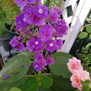こちらも 仲良し三姉妹(*>∇<)ノ💗✨ 左から 薔薇エプタイド💜(ˆ⌣ˆԅ) 薔薇マリーナ❤(ˆ⌣ˆԅ) 新入りさんの オオバシコンノボタン🍇(ˆ⌣ˆԅ) すっかりヽ(*´∀`)ノ秋ですね💕
