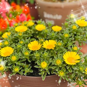 寄せ植えに初めて ゴールドコイン採用です😊 つぎからつぎへと 元気いっぱいの黄色いお花を咲かせてくれています❣️