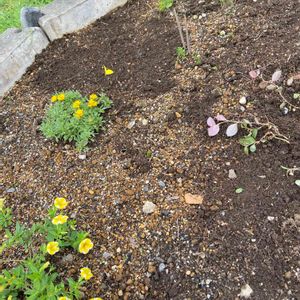 PWのバーベナ メテオールシャワーと Breezy greenの エボルブルス ジワジワ成長中✨ 背景の花壇でバーベナが見辛いですが、 確実に背丈高くなってきています😄🪴 5月30日に植え付けたので、 明日でちょうど3週間です😄 花壇のキンギョソウは、かわいい黄色で気に入っていますが 赤いバーベナが想像を上回るモリモリ具合で 目立たなくなってしまいました😂💦 鉢植えの表面、やっぱ苔やヤシの繊維のせた方がいいのかな...🧐
