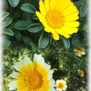 朝の散歩🚶♂でみつけたお花✿ 車道と歩道の間に黄色が鮮やか💛目に止まりました (〃^ー^〃)♡ 教えて頂きカモミールと思っていたのは春菊でした♡💛♡ どなたかが植えられたのか…腰高まで育って居ます♡ まだまだ知らないお花満載です😅 今日は昨夜からの雨も止んでお天気も回復して来そう♡ 連休も終わり、土を買って来たのでいくつか気になってる鉢の土を替えたいと思います♡ 今日も良い日になります様に…🍀