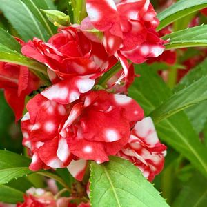 ホウセンカ(鳳仙花) 紅白の花びらがとても綺麗です💕 花言葉🌺一人にして 触るとすぐに種が飛び散るからこの花言葉❓